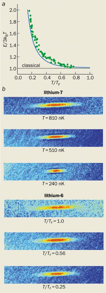 Kvantové chování atomárního plynu se objevuje přibližně při Fermiho teplotě TF = EF /kB. Tato teplota odpovídá stavu, kdy de Brogliho vlnová délka λ je srovnatelná s rozměry atomů. Při TF / 2 je λ rovna meziatomové rozteči d (viz Obrázek 1a). Řádově tato teplota bývá v mikrokelvinech.