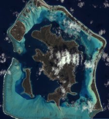 Nalevo: Aricebo v Portoriku, 1 m/pixel. Napravo: Bora Bora, 4 m/pixel