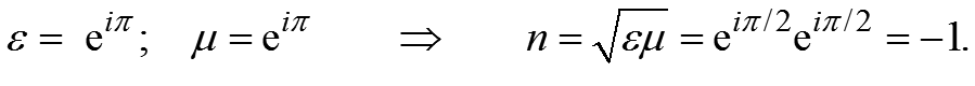 Klíčové pro volbu komplexní větve odmocniny je to, že pro pasivní materiál musí mít druhá odmocnina permitivity i permeability kladnou imaginární část, jinak by docházelo k samovolnému zvětšování amplitudy. V případě oddělených polí elektrických a magnetických rezonátorů je elektromagnetická vlna absorbována, v případě jejich kombinace se v oblasti záporného indexu lomu objeví okno propustnosti a vlna prostředím se záporným indexem lomu prochází.