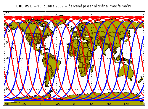 | CALIPSO | opožděná max. 15 sekund za CloudSatem, provádí současné měření s Aqua, drží pevně formaci | Na palubě družice je lidarLIDAR – Light-Imaging Detection and Ranging, detekce a určování vzdálenosti za pomoci laseru. Jde o metodu zjišťování vzdálenosti a vlastností objektu na základě analýzy rozptýleného světla laseru. Analogií v rádiovém oboru jsou radary. Vzdálenost objektu se určí z časové prodlevy odraženého signálu. Lidary se využívají hojně v geologii, seismologii a při sledování vlastností atmosféry. umožňující měřit výškový profil aerosolů v atmosféře, detekovat obtížně viditelnou troposférickou oblačnost a polární stratosférickou oblačnost. | 28. 4. 2006 |