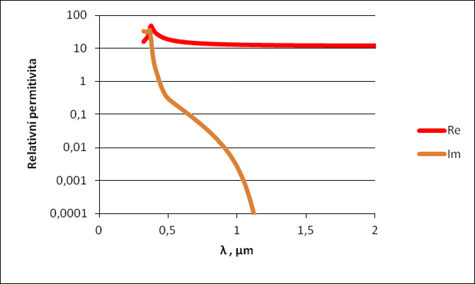 Závislost indexu lomuIndex lomu – absolutní index lomu je v homogenním izotropním prostředí bez disperze definován jako podíl rychlosti světla a fázové rychlosti. Obecně je index lomu komplexní veličina závislá na frekvenci, v případě anizotropního prostředí tenzorová. Frekvenční závislost reálné části popisuje disperzi v daném prostředí. Imaginární část indexu lomu popisuje (v závislosti na znaménku) absorpci nebo zesílení světla. Relativní index lomu je dán poměrem indexů lomu prostředí, do kterého záření vstupuje vůči indexu lomu prostředí, z něhož záření vychází. Na rozhraní dvou prostředí je relativní index lomu roven podílu sinu úhlu dopadu a sinu úhlu lomu (Snellův zákon). Uvozující přídavné jméno (absolutní nebo relativní) se často vypouští, takže zda se jedná o absolutní či relativní index lomu poznáme pouze z kontextu. na vlnové délce. Zdroj: Virginia Semiconductor, Inc.