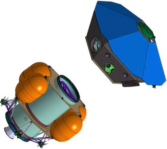 Nová gravitační observatoř NGO, přesněji Nová observatoř pro sledování gravitačních vln, je samostatným projektem Evropské kosmické agentury. Trojice sond bude obíhat na samostatné dráze kolem Slunce, jednotlivé sondy by od sebe měly být vzdálené 1 milion kilometrů. Formace bude mít tvar písmene V, v jehož vrcholu bude mateřská sonda o celkové hmotnosti 1 703 kilogramů (včetně paliva). Ve zbývajících vrcholech trojúhelníku budou dceřiné sondy o celkové hmotnosti 3 585 kg. Vypuštění trojice bude probíhat nadvakrát, při prvním startu bude vynesena mateřská sonda, při druhém obě dceřiné sondy. Formace bude obíhat kolem Slunce 20° za Zemí, rovina trojúhelníku, v jehož vrcholech budou sondy, bude skloněna k ekliptice 60°. Vzdálenost mezi sondami (milion kilometrů) bude udržována s přesností menší než 1 %. Jako testovací tělesa poslouží krychličky ze slitiny zlataZlato – aurum, chemicky odolný, velmi dobře tepelně i elektricky vodivý, ale poměrně měkký drahý kov žluté barvy. Již od dávnověku byl používán pro výrobu dekorativních předmětů, šperků a jako měnová záruka při emisích bankovek. V současné době je navíc důležitým materiálem v elektronice, kde je ceněna jeho vynikající elektrická vodivost a odolnost proti korozi. V přírodě se vyskytuje zejména ryzí. a platinyPlatina – velmi těžký a chemicky mimořádně odolný drahý kov stříbřitě bílé barvy. Jako doba objevení platiny je obvykle označován rok 1735. Ušlechtilý, odolný, kujný a tažný kov, elektricky i tepelně středně dobře vodivý. V přírodě se vyskytuje zejména ryzí. Využití má v elektrotechnickém průmyslu a šperkařství. (73:27) o hraně 4,3 cm. Tyto volně gravitující krychličky budou sledovány laseremLASER – Light Amplification by Stimulated Emission of Radiation, zesílení světla pomocí stimulované emise záření. Roku 1958 ukázal Charles Hard Townes spolu s Arthurem Leonardem Schawlowem, že je možné zkonstruovat podobné zařízení jako již existující MASER (pracuje v mikrovlnné oblasti) také pro světlo. První laser zkonstruoval Theodore Harold Maiman v roce 1960. Aktivním prostředím byly ionty chrómu v syntetickém rubínovém krystalu. s vlnovou délkou 1 064 nm a výkonem 2 W. Dva lasery budou na mateřské sondě (musí zaměřovat tělesa na obou zbývajících sondách), po jednom na dceřiných sondách (budou zaměřovat testovací těleso na mateřské sondě). Na mateřské sondě budou ke sledování namontovány dva dalekohledy o průměru 20 cm a na dceřiných po jednom. Asymetrické uspořádání zlevní projekt, neboť z šesti laserových zaměřování testovacích těles zůstanou jen 4. To ovšem znemožní trvalé měření polarizace gravitačních vln, polarizaci bude možné určit jen nepřímo z tvaru trajektorie na oběžné dráze. Počítá se s tím, že mateřská sonda bude mít příkon 638 wattů a každá z dceřiných sond spotřebuje 548 wattů.