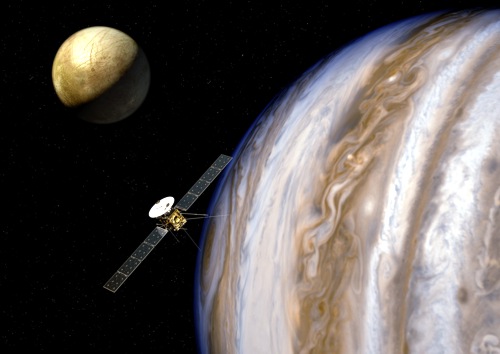 Umělecká vize mise JUICE. Zdroj: ESA.