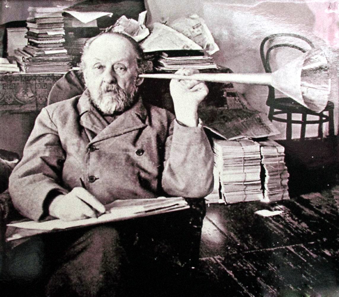 Konstantin Eduardovič Ciolkovskij, zakladatel kosmonautiky. Spála ho téměř