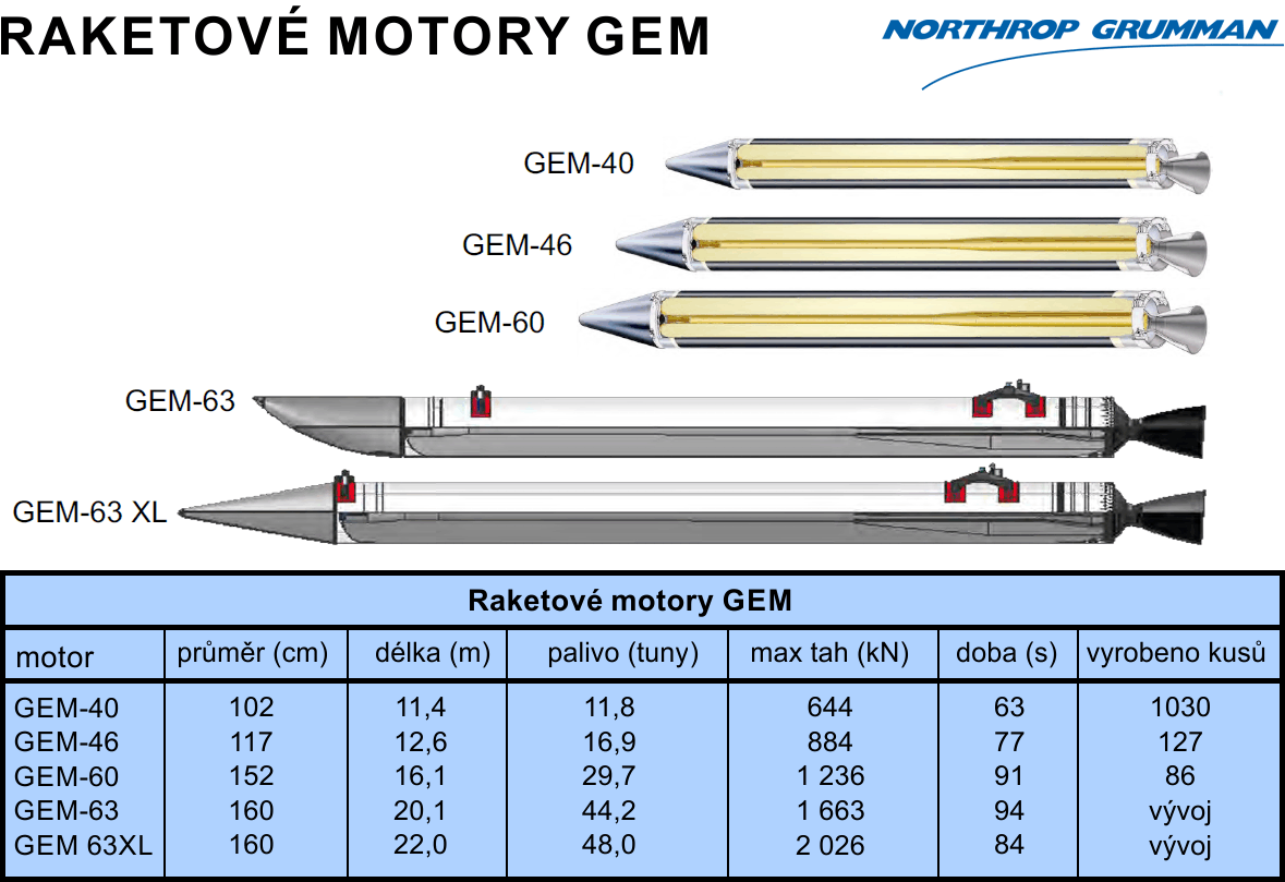 Pomocné raketové motory na tuhá paliva společnosti Northrop Grumman.