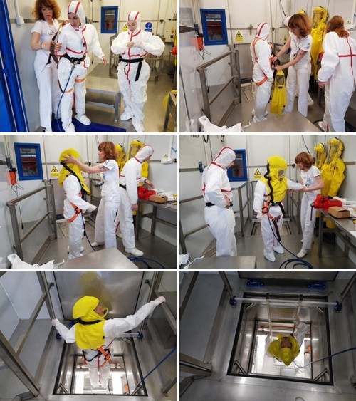 Obr. 11: Příprava pracovnice pro vstup z předkomory do silně zamořené
