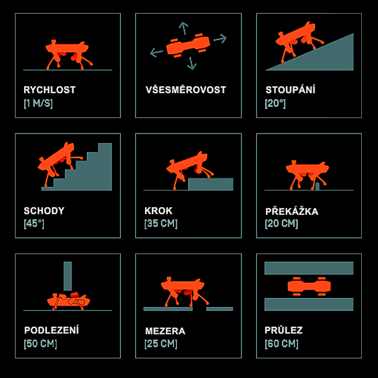 Čtyřnohá schopnost robota dokáže zdolávat mnoho překážek v přirozeném