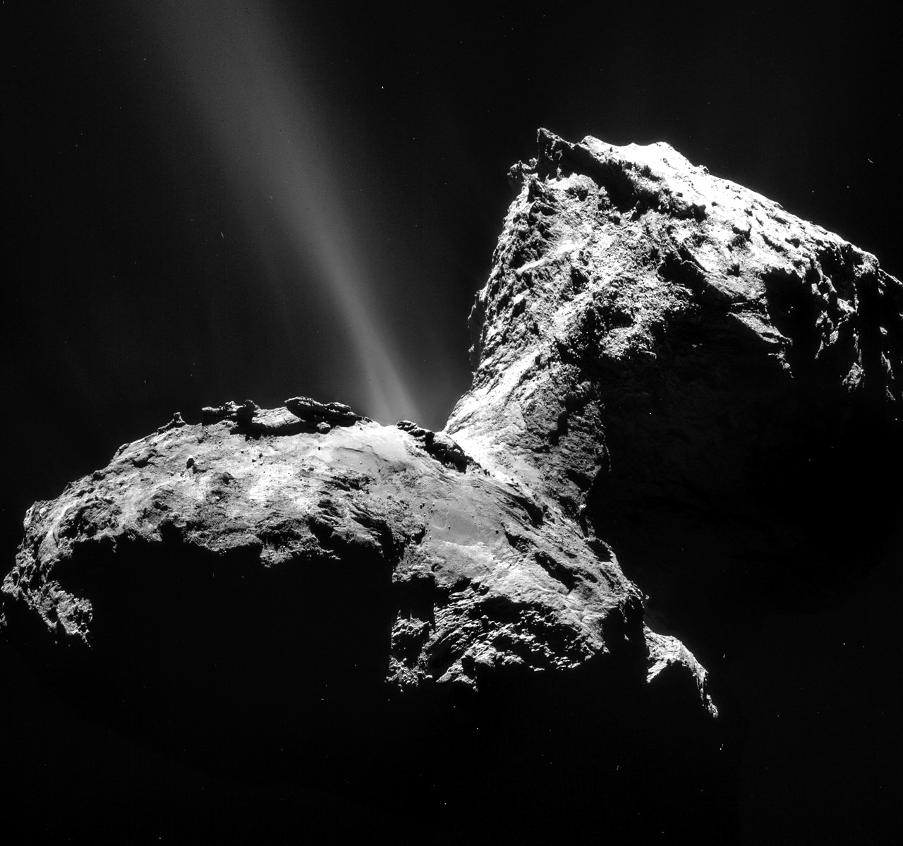 Záběr jádra komety 67P / Čurjumov-Gerasimenko pořízený kamerou NavCam