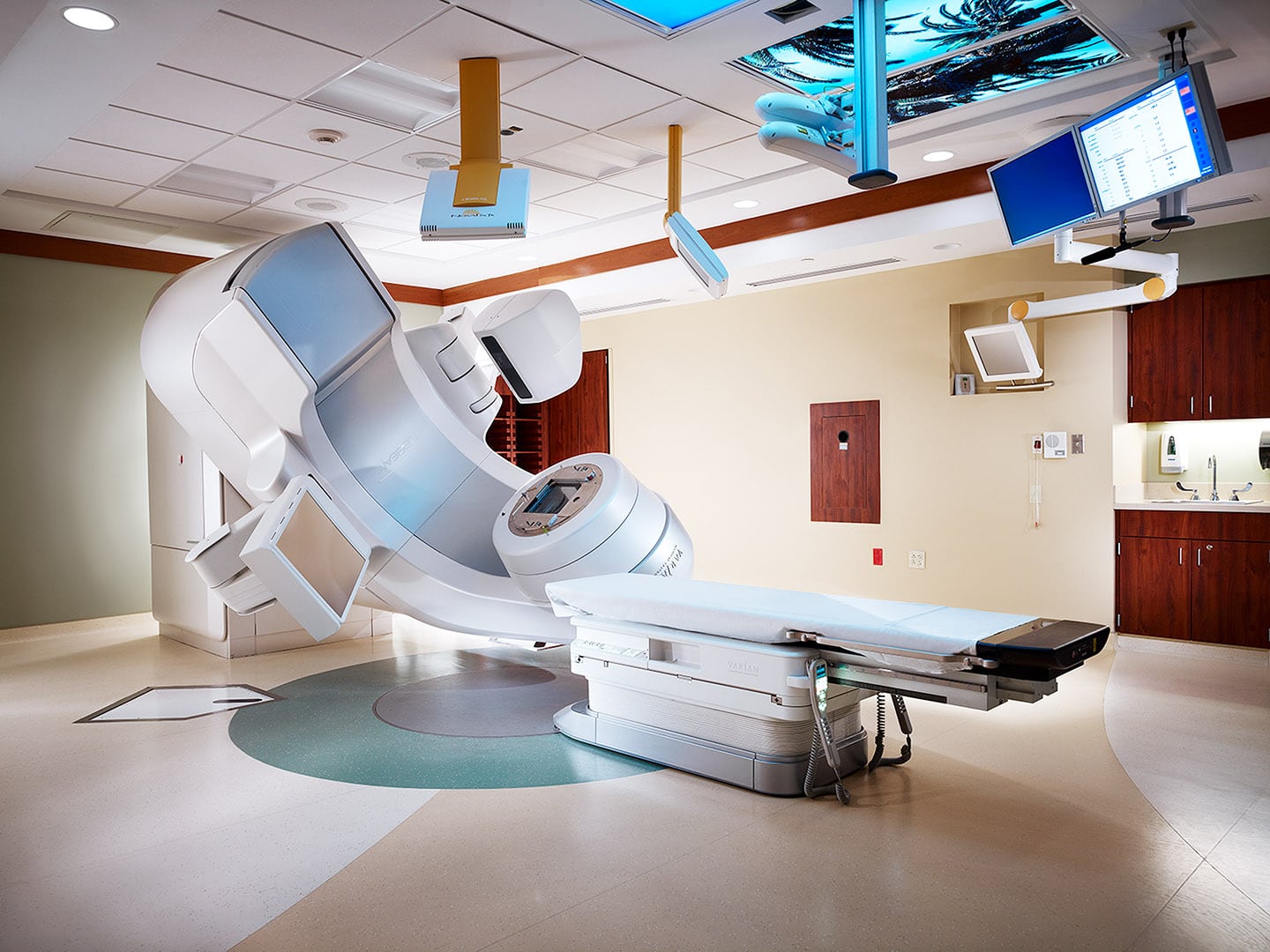Moderní ozařovací zařízení s lineárním urychlovačem. Fotografie: Ed Massery.