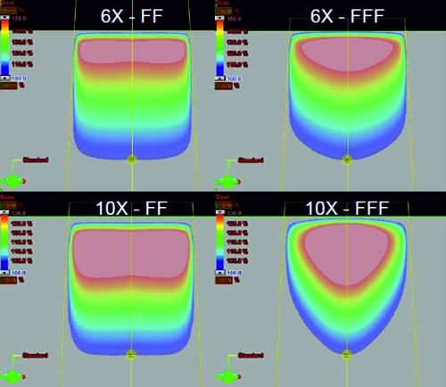 K homogenizaci fotonového svazku slouží tzv flattening filtry (FF). Jedná se o kovové kužely, které přístroj dle zvolené energie záření automaticky vkládá do svazku ještě před jeho výstupem. Uprostřed kuželu musí fotony projít nejsilnější vrstvou materiálu, a jsou proto nejvíce pohlcovány. Výsledkem je rovnoměrné rozložení fotonů v ozařovacím poli, což značně usnadňuje dozimetrii a výpočty dávkové distribuce v cílovém objemu během plánování radioterapeutického zákroku. Nevýhodou používání FF filtrů je výrazné prodloužení ozařovací doby, neboť filtr pohltí převážnou většinu záření, které by jinak mohlo býti využito k terapeutickému účelu. Nejmodernější přístroje typu TrueBeam proto již více než jedno desetiletí pracují s nefiltrovaným svazkem (Flattening Filter Free – FFF), neboť pokroky v oblasti výpočetní techniky a dozimetrie umožnily velmi přesné plánování radioterapie i v případě svazků s nehomogenní distribucí energie.