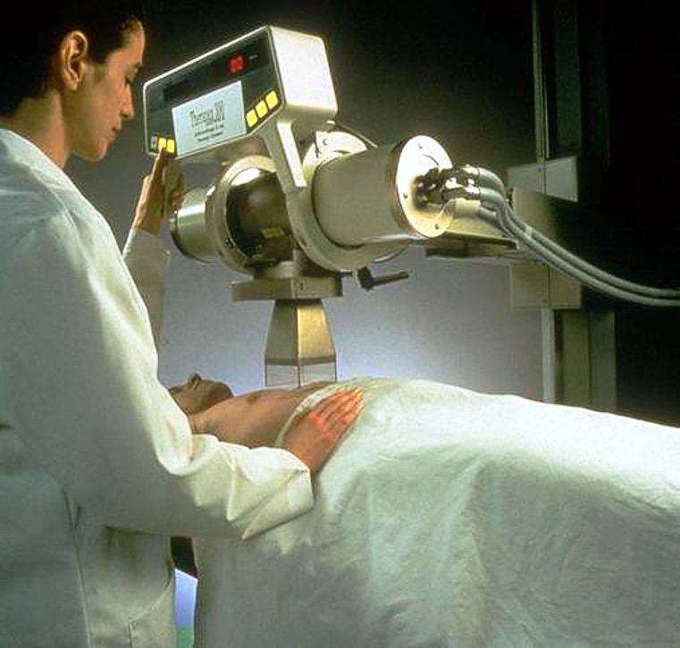 Již jeden měsíc po objevu „nového druhu paprsků“ W. C. Roentgenem použil E. H. Gurbée dne 29. 1. 1886 záření X u rakoviny prsu a u lupus vulgaris. Od té doby až po dnešek prodělala léčba rentgenovým zářením a zářením gama veliký rozvoj. Některé její způsoby byly zcela opuštěny, jiné nahrazeny modernějšími metodami, další patří dosud k jedněm z nejúčinnějších zbraní v léčbě zhoubných nádorů. Po zjištění, že rentgenové záření má biologický účinek na nádorovou tkáň, se hledaly různé způsoby, jak léčebně ovlivnit zhoubné nádory. První skutečné vyléčení rakoviny bylo dosaženo kontaktní aplikací radiaRadium – šestý prvek ze skupiny kovů alkalických zemin, silně radioaktivní, vzniká v rozpadové řadě uranu a thoria. Radium bylo objeveno roku 1898 Marií Curie-Sk³odowskou, jejím manželem Pierem a Gustavem Bémontem v jáchymovském smolinci.. Tak bylo prokázáno, že ionizujícím zářenímIonizující záření – jakékoli radiační pole, jehož kvanta mají dostatečnou energii, aby ionizovaly atomy a molekuly. V biomedicíně musí proniknout do těla a ionizovat biomolekuly. lze rakovinu vyléčit. Jeden ze směrů využití paprsků X proto spočíval v „napodobení“ kontaktní terapie radiem (muláže) a vyústil v kontaktní rentgenovou terapii. Problémem zůstávaly nádory uložené v hloubce. V tomto směru se zvyšovala energie záření, filtrace záření a vzdálenost ohnisko – kůže, aby se docílilo vyšší procentuální hloubkové dávky. S tím ruku v ruce postupovalo hledání nových ozařovacích technik, o kterých pojednáme dále. Jestliže ještě v padesátých letech byla rentgenová terapie nejdostupnějším a nejrozšířenějším prostředkem k léčbě nádorových onemocnění zářením, dnes již dominuje vysokoenergetické záření X generované lineárními urychlovači.