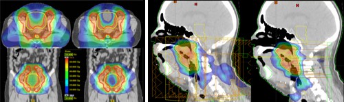 Obr. 12: Srovnání IMRT (vlevo) a CRT (vpravo)