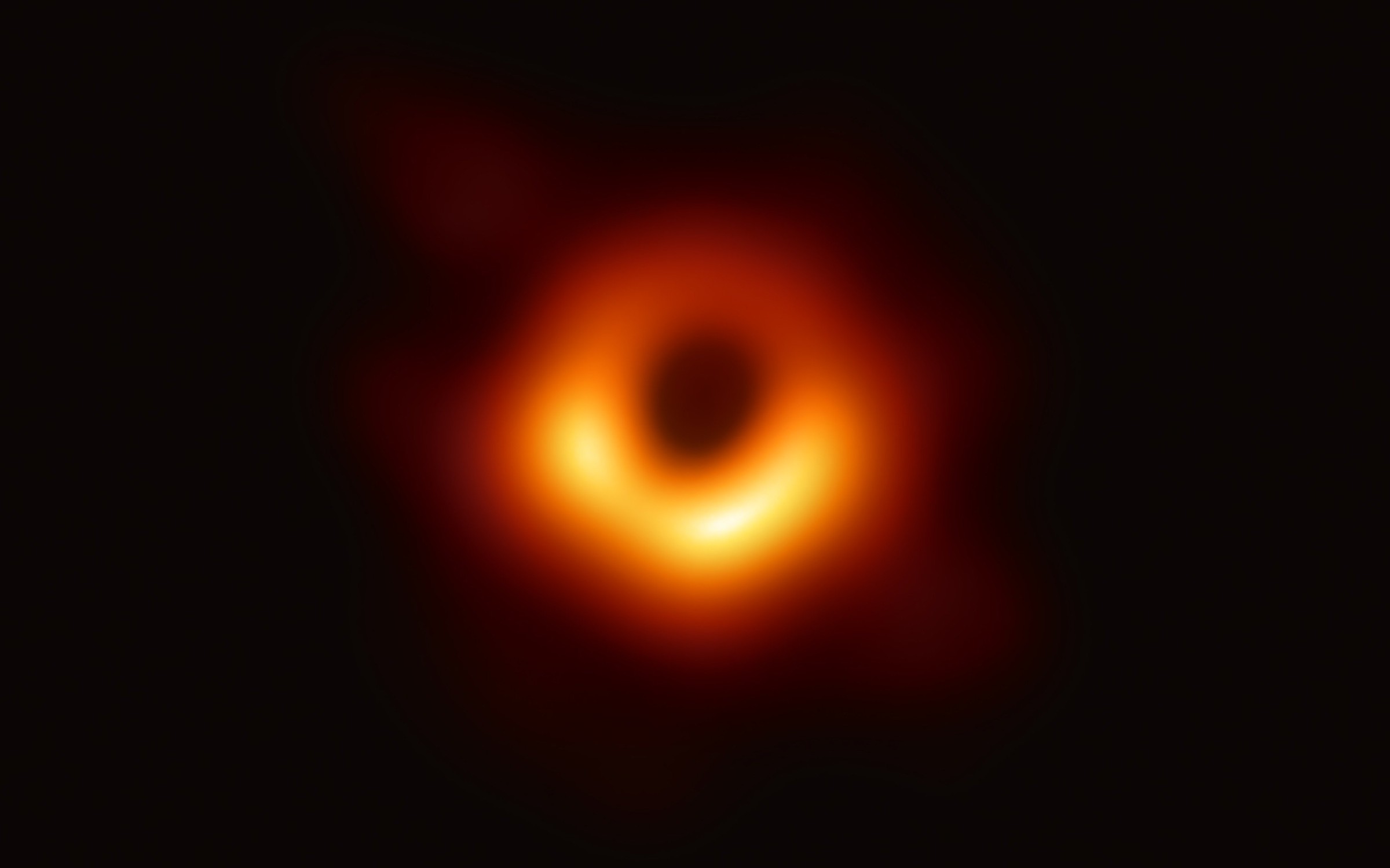 Historicky první snímek těsného okolí černé díry z roku 2019. Zdroj: EHT.