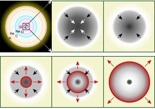 Schematické znázornění gravitačního kolapsu. Zdroj: Wikimedia Commons.