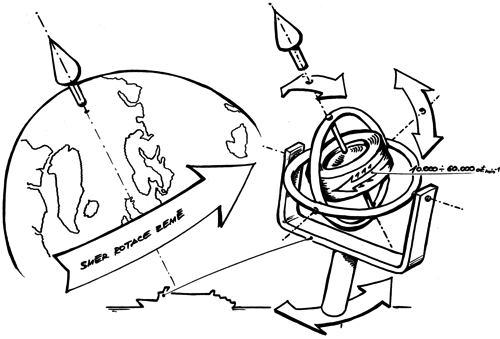 Jak už název napovídá, hlavní součástí gyrokompasu je setrvačník (gyroskop). Gyrokompas je složen ze dvou do koulí, z nichž jedna je do druhé vložena a spojena přes pohyblivá ramena. Rotující setrvačník je vložen do vnitřní koule a zavěšen na volném závěsu. Otáčky setrvačníku v námořním gyrokompasu jsou obvykle od 10 000 do 60 000 za minutu. Jakmile setrvačník dosáhne potřebných otáček, začne postupně stáčet svou osu otáčení ve směru místního poledníku, což se stane zhruba za 1 až 2 hodiny. Stáčení této osy je způsobeno otáčením a gravitací Země. Vzhledem ke své nákladné konstrukci se nachází zejména na drahých lodích. Na stabilitu a přesnost gyrokompasu má vliv více faktorů, jako například rychlost a manévrování lodi. Velmi názorný popis funkce gyrokompasu lze najít YouTube kanálu Causal Navigation.