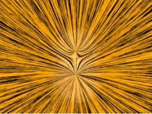 Obr. 18: Zobrazení elektrického pole znázorněného na obrázcích 16 a 17 pomocí šumové textury. V apletu propojeném s tímto obrázkem můžeme znázornit šumovou texturou pole generované různě velikými náboji v různých polohách.