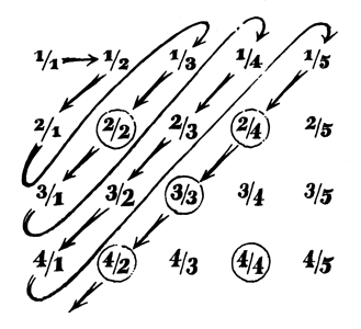 | Popis: Cantorův důkaz spočetnosti racionálních čísel Autor: Ivan Havlíček/Aldebaran Formát: tif 2004×1828 |