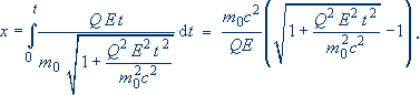 Řešení relativistické: Budeme integrovat relativistickou pohybovou rovnici