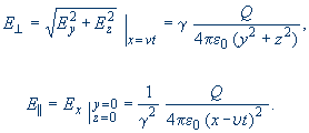 Vidíme, že elektrické pole ve směru pohybu je stlačeno faktorem γ−2 a napříč pohybu je nataženo faktorem γ. Pole se pohybuje spolu s nábojem. Magnetické pole tvoří kružnice kolmé na pohyb náboje. Pro nekonečnou řadu nábojů bychom získali pole kolem vodiče. Podobně lze postupovat při transformaci energie a hybnosti, hustoty a proudové hustoty, atd. Prohlédněte si aplet „Heavisideovo pole“.