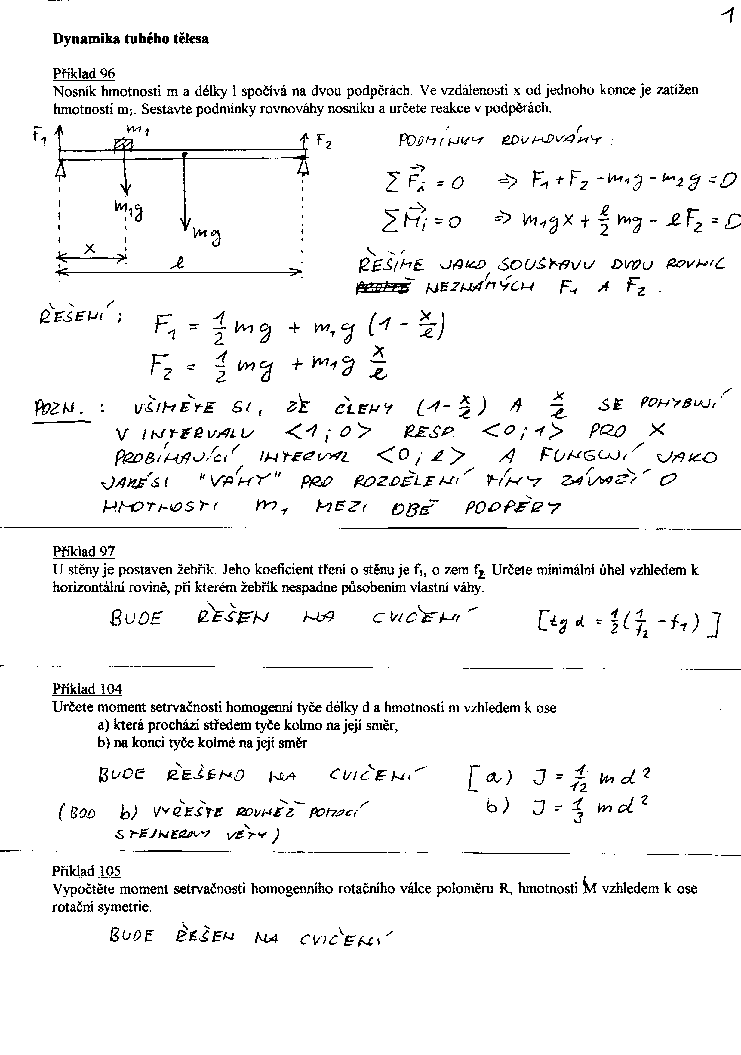 1 1 96, 97 (podmínky rovnováhy), 104, 105 (moment setrvačnosti)