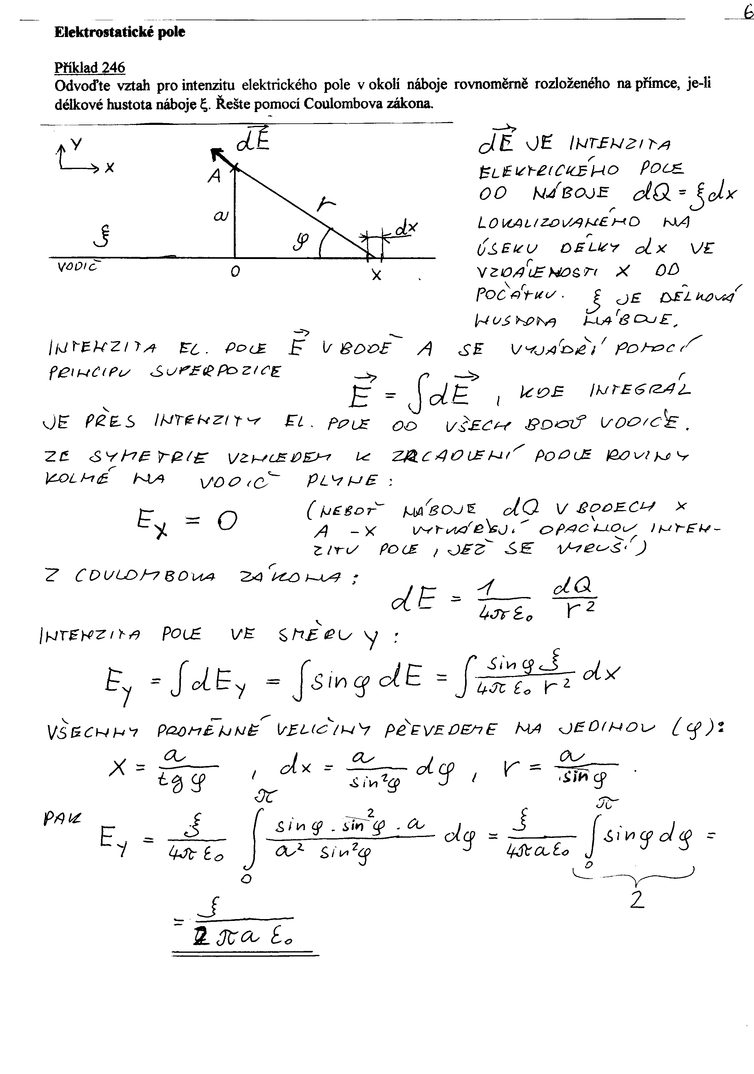 6 6 246 (elektrostatika, elektrostatické pole v okolí nabité přímky)